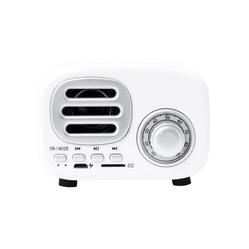 Compacto altavoz con estilo vintage en forma de radio de época y 3W de potencia. Con conexión Bluetooth® para disfrutar de la libertad inalámbrica, reproduciendo la música y aportando estilo al mismo tiempo. Con indicadores luminosos, ranura para tarjetas Micro SD de hasta 64 GB y batería de 500 mAh. Presentado en atractiva caja de diseño kraft, con manual de instrucciones en español e inglés. Conexión Bluetooth. Potencia Sonido 3W. Batería 500 mAh