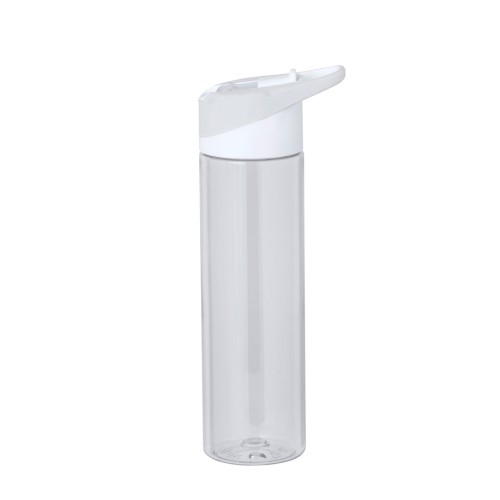 Bidón en RPET de 600 ml de capacidad. Libre de BPA, con sistema de fácil apertura, dosificador con pajita incluida y asa de transporte a juego. Disponible en variada gama de colores brillantes y presentado en atractiva caja de diseño kraft. El material RPET se elabora a partir de plástico reciclado, para así fomentar la reutilización de residuos plásticos y ayudar a la sostenibilidad del planeta. 600 ml
