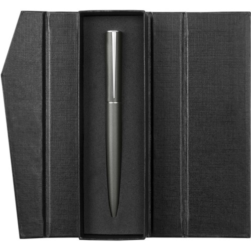 Metálico. Cuerpo color mate. Clip y anillo de acero. Apertura giratoria. Parte superior destapa acero. Parte inferior destapa dorado. Estuche de cartón. Tinta negra. Presentación en estuche con cierre magnético.