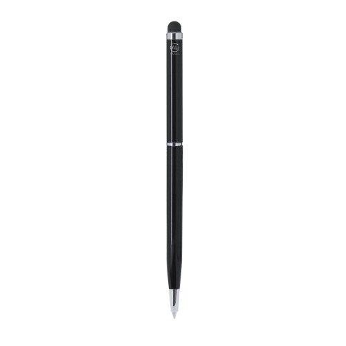 Elegante bolígrafo puntero de Aluminio Reciclado. Con mecanismo giratorio de acabado brillo y puntero en la parte superior en negro, en tinta azul. Clip y accesorios en acabado cromado. Con logo de Aluminio Reciclado grabado.El Aluminio Reciclado es un material con posibilidades de reciclaje casi infinitas, sin perder sus propiedades originales y consumiendo menos energía en este proceso.Certificación GRS (Global Recycled Standard / Estándar de Reciclaje Global), que garantiza el origen reciclado del material usado para fabricar el producto.