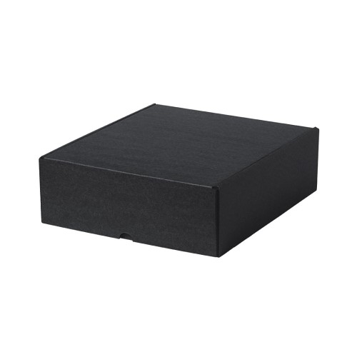 Caja de presentación tamaño XL. Fabricado en cartón reciclado corrugado en color negro. En línea con la tendencia del mercado hacia la sostenibilidad integral del regalo, ofreciendo soluciones de origen reciclado con el fin de ayudar a la mejora y conservación de nuestro planeta.