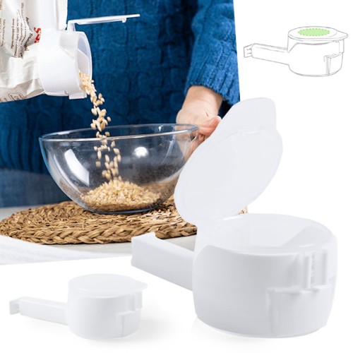 Original clip dispensador en resistente material PP, con pinza universal y tapa de seguridad.