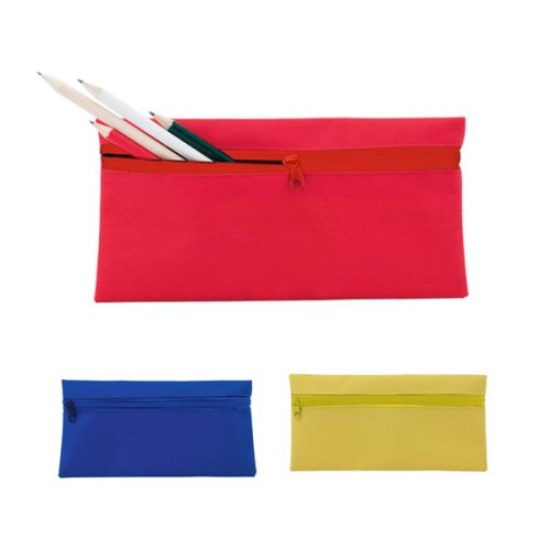 Estuche de cremallera frontal en resistente poliéster 600D de vivos colores. Con cremallera a juego.