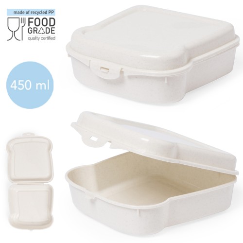 Fiambrera para sandwich de 450 ml de capacidad en color natural. Con cierre de seguridad. 450 ml
