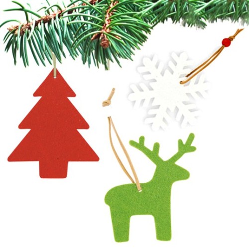 Figuras navideñas para colgar en suave fieltro. Disponibles en diseños copo de nieve, árbol de navidad y reno.