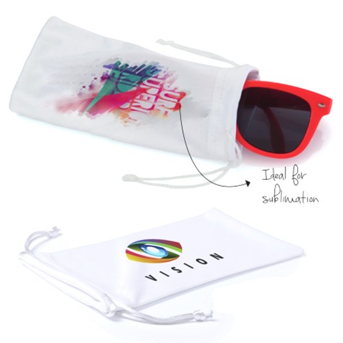 Funda de suave poliéster con cuerpo acabado en color blanco y cierre de cuerdas a juego. Especialmente diseñada para marcaje en sublimación.