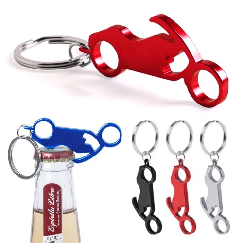 Original llavero abridor en aluminio con diseño de moto en variada gama de vivos colores brillantes.
