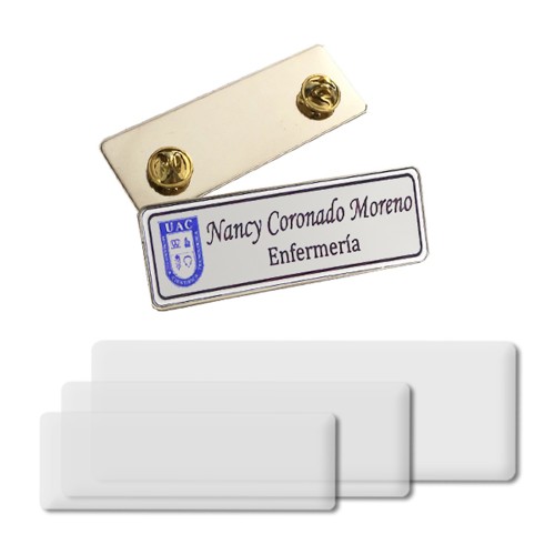 Dimensiones: 25 x 75 mm. Color piocha: Plata Incluye Domo. Para grabar en laser o grabado de diseño con domo. Packing: 50 Pcs. Código: 591080222
