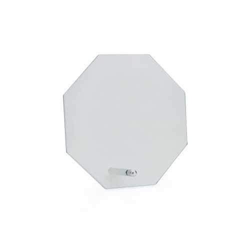 Placa trofeo de grueso cristal con elegante diseño octogonal. Especialmente diseñada para marcaje a láser y presentada en estuche de protección individual.