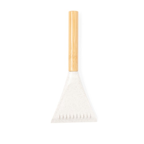 Práctico rascador de hielo fabricado en bambú y caña de trigo. Con forma de pala, su mango está fabricado en bambú y la zona de rascado está hecha de caña de trigo, con parte limpiadores y sierra integrada. Logo ditintivo en el mango y presentado individualmente en bolsa de papel kraft. Materiales como el bambú fomentan la utilización de materias primas naturales, reduciendo las emisiones contaminantes. Proviene de una planta de gran resistencia y versatilidad, con crecimiento y regeneración rápidos, siendo una excelente alternativa al uso de madera tradicional. La caña de trigo fomenta la utilización de materias primas naturales, reduciendo así las emisiones contaminantes.