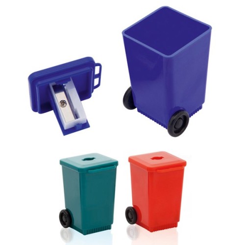 Original sacapuntas extraíble con diseño de contenedor en vivos colores y cuerpo de suave acabado.