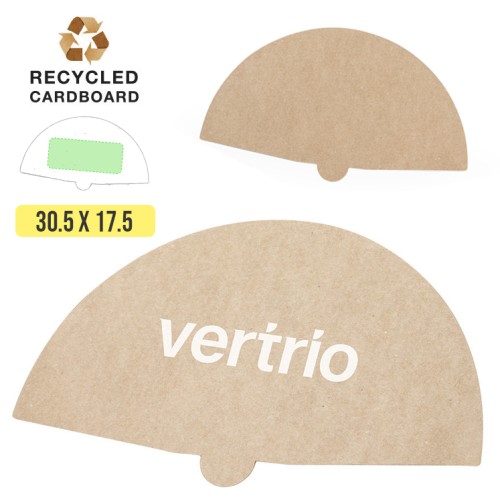 Abanico de línea nature fabricado en resistente cartón reciclado de 430g/m2, con amplia superficie de marcaje y en tono natural.