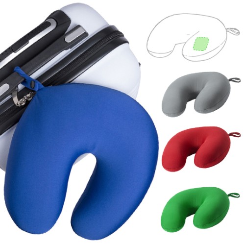 Almohadilla para cuello con cuerpo de suave acabado en poliéster en amplia gama de vivos colores. Con relleno de bolitas y cinta de transporte. Relleno EPS
