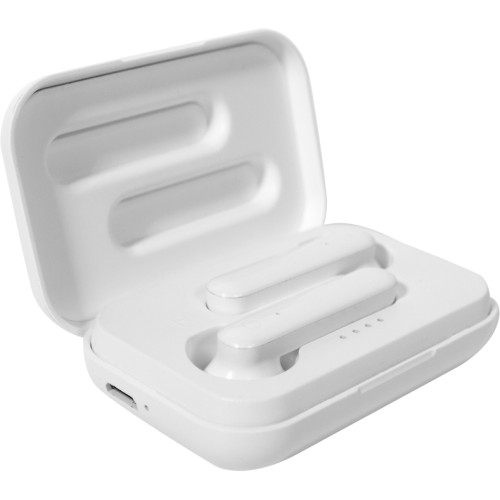 6,8 x 4,4 x 2 cm. (medida de la caja) 4 x 0,8 cm (auriculares). Plástico ABS. Auriculares bluetooth, se conectan al celular de forma inalámbrica. Los auriculares cuentan con función touch en cada costado de los audifonos (izquierdo y derecho) para funciones de avance, retroceso, reproducción y pausar musica. Así como también para las funciones de tomar y finalizar una llamada. Estuche que permite cargar la batería de los auriculares. Indicador de batería. Duración de la carga en inactividad: 200 horas. Tiempo de reproduccion autónomo 3 horas aprox. Batería de litio. Cable de carga micro USB V8. Presentación en caja de regalo.