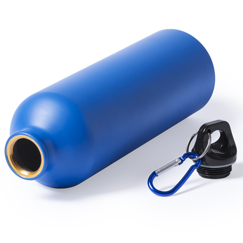 Bidón de aluminio con 800 ml de capacidad. Con tapón de seguridad a rosca y mosquetón metálico de fácil transporte. Original acabado mate y con una variada gama de colores. Presentado individualmente en una caja de diseño. 800 ml