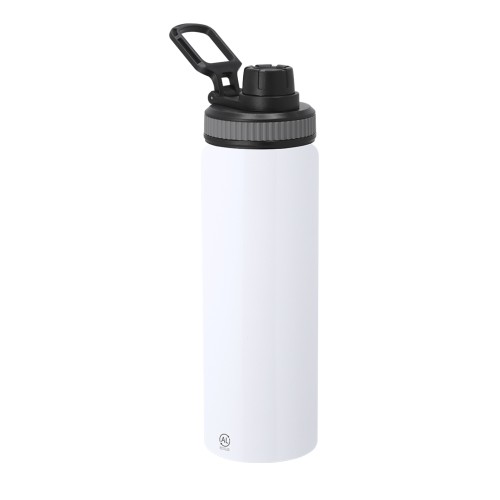 Bidón de Aluminio Reciclado con 800 ml de capacidad. Incluye tapadera color negro con sistema de cierre a rosca, agarre de silicona gris para un óptimo sellado, dosificador y asa para transporte ajustable. Incluye distintivo Aluminio Reciclado.El aluminio reciclado es un material con posibilidades de reciclaje casi infinitas, sin perder sus propiedades originales y consumiendo menos energía en este proceso.Certificación GRS (Global Recycled Standard / Estándar de Reciclaje Global,NULL), que garantiza el origen reciclado del material usado para fabricar el producto. 800 ml