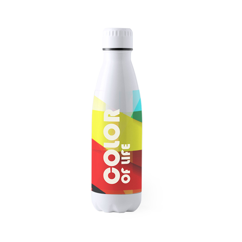 Bidón para sublimación de 700ml de capacidad con cuerpo acabado en acero inox en color blanco brillo. Con tapón de seguridad. Presentado en atractiva caja de diseño. 700 ml