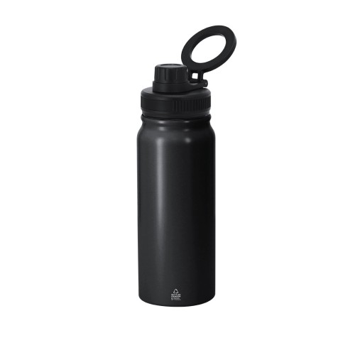 Bidón térmico de 600 ml de capacidad, fabricado en Acero Inox Reciclado de doble pared. Con función soporte magnético giratorio para smarthphone. Libre de BPA. Incluye distintivo de acero inoxidable reciclado.El acero es uno de los materiales más demandados y que puede encontrarse casi en todas partes, desde productos de uso diario a grandes construcciones. Con innumerables propiedades, entre las que cabe destacar la durabilidad y su alto grado de reutilización, convirtiéndolo en una alternativa muy valorada en soluciones de sostenibilidad. Debidamente tratado, permite obtener nuevos recursos de infinita utilización. 600 ml. Magnético