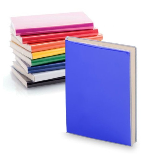 Bloc de notas con tapas de suave tacto acabadas en PVC brillante y en atrevidos colores. De 100 hojas lisas. 100 Hojas
