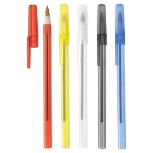 Bolígrafo de capucha de diseño clásico con cuerpo de suave acabado transparente en cálidos colores. Tinta azul.
