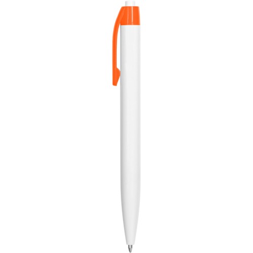 Plástico. Bolígrafo con cuerpo y pulsador de color blanco y clip en color. Tinta negra.