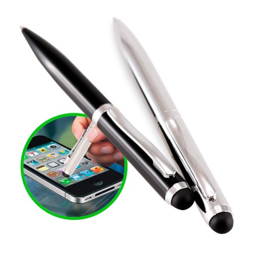 Bolígrafo Metálico modelo "Hotel", con goma posterior negra "Touch-Screen" para pantalla táctil. Escritura negra.