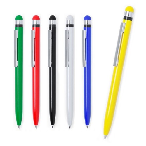 Bolígrafo puntero de mecanismo giratorio en desenfadados colores, con puntero a juego. Acabado liso especialmente diseñado para marcaje en tampografía y tinta azul.