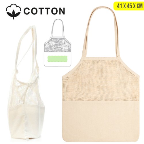 Bolsa de redecilla de línea nature en algodón crudo de 220g/m2, con superficie lisa para impresión. Asas largas de 60 cm reforzadas.