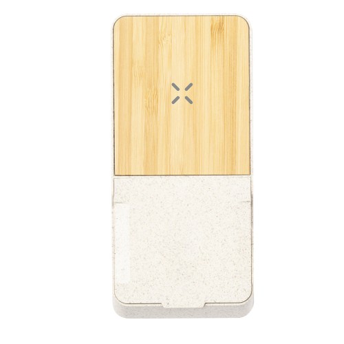 Completo cargador inalámbrico 15W con soporte fabricado en combinación de caña de trigo y bambú. Diseñado para la carga simultánea del smartphone o smartwatch, y auriculares, tanto de forma inalámbrica como a través de su puerto Tipo C: una estación de carga todo en uno, versátil y con soporte para smartphone o tablet. Presentada en atractiva caja individual de diseño kraft y disponible manual de instrucciones en español e inglés. La caña de trigo fomenta la utilización de materias primas naturales, reduciendo así las emisiones contaminantes. Materiales como el bambú fomentan la utilización de materias primas naturales, reduciendo las emisiones contaminantes. Proviene de una planta de gran resistencia y versatilidad, con crecimiento y regeneración rápidos, siendo una excelente alternativa al uso de madera tradicional. Fabricado conforme a los estándares RoHS y en cumplimiento con los siguientes requisitos de seguridad: Sistema de protección contra sobrecalentamiento. Sistema de protección contra sobrecarga. Sistema de bloqueo para evitar cortocircuitos. Inalámbrico 15W. Salida Tipo C