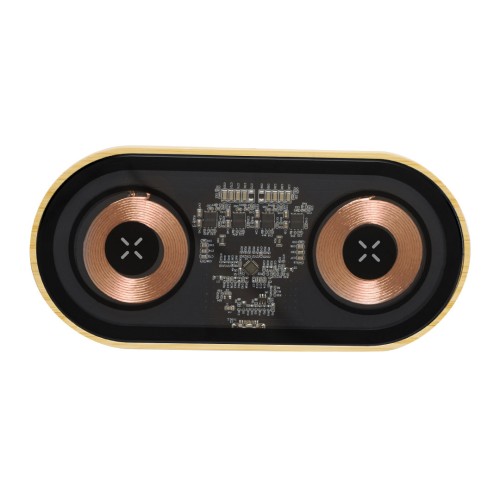 Cargador inalámbrico doble de 15W, con un original diseño y ventana transparente que permite ver los componentes internos del dispositivo. Con base de bambú, compatible con dispositivos con tecnología Qi, y que además permite cargar dos dispositivos simultáneamente. Conexión Tipo C, con instrucciones de uso en español e inglés. Presentado en caja individual de diseño kraft. Materiales como el bambú fomentan la utilización de materias primas naturales, reduciendo las emisiones contaminantes. Proviene de una planta de gran resistencia y versatilidad, con crecimiento y regeneración rápidos, siendo una excelente alternativa al uso de madera tradicional. Fabricado conforme a los estándares RoHS y en cumplimiento con los siguientes requisitos de seguridad: Sistema de protección contra sobrecalentamiento. Sistema de protección contra sobrecarga. Sistema de bloqueo para evitar cortocircuitos. Inalámbrico 15W