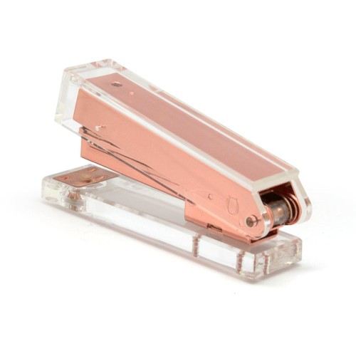 12,8 x 6 x 3,1 cm. Acrílico y metal. Engrapadora de escritorio que combina disen?o y funcionalidad para el di?a a di?a. Para broches tamaño