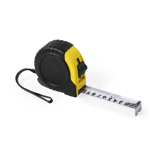 Flexómetro de 7,5 metros con cuchilla metálica y mecanismo de bloqueo. Con cuerpo de suave acabado en variados colores, recubierto con funda protectora en resistente goma, clip metálico para cinturón y cinta de transporte. Con troquelado especial para marcaje en doming/gota de resina y presentado en caja individual. Con Freno y Clip Incluido