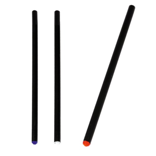 Elegante lápiz de madera negra con mina a juego y accesorios en vivos colores. Punta sin afilar.