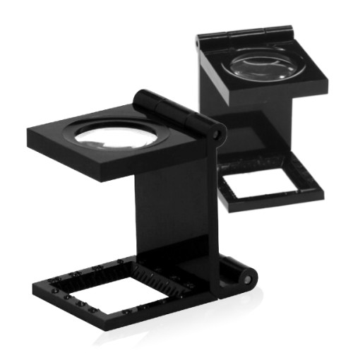 Lupa plegable cuentahilos de 7 aumentos. Con regla de medición integrada en cuerpo y presentada en caja individual. Con Regla para Medición