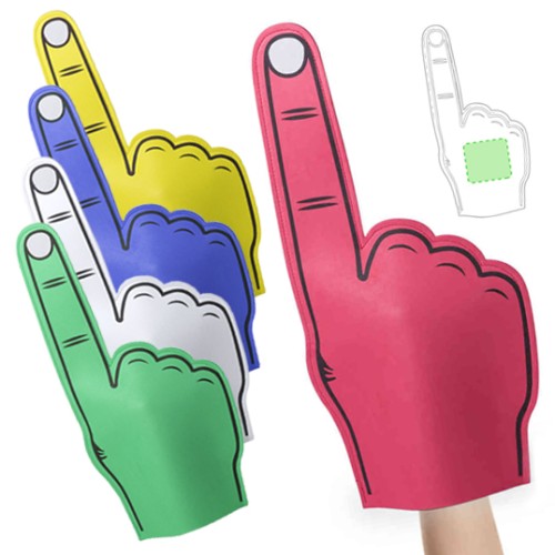 Mano de animación gigante en EVA. Con amplia superficie de marcaje y dibujo por ambas caras. Disponible en variada gama de colores.