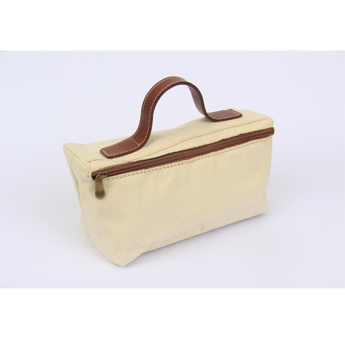 Neceser de lona 100% algodón con detalles en cuero. Forrado en oxford. Medidas: 26x12x12cm