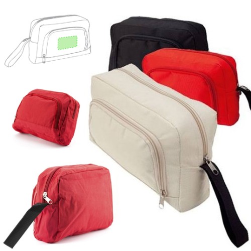 Neceser multiusos en resistente poliéster 600D de vivos colores con cremalleras a juego. Bolsillo exterior de cremallera y resistente asa de transporte en color negro. Forro interior en suave poliéster a juego.