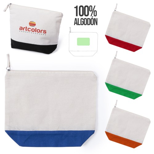 Neceser multiusos en material 100% algodón de 140g/m2. Diseño bicolor, con cuerpo en algodón de color crudo y base en variada gama de colores. Cremallera a juego y tirador cromado.