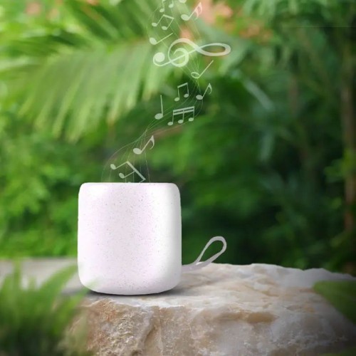 Parlante portátil fabricado en bambú y wheat straw, pasta de tallo de trigo, un material sustentable que reduce el consumo de plásticos vírgenes. Este dispositivo es resistente al agua con certificación IPX4, lo que lo convierte en el compañero ideal para disfrutar de tu música en interiores o al aire libre. Con tecnología Bluetooth 5.0 y un rango de operación de hasta 10 metros. Su batería de 1200 mAh proporciona hasta 4 horas de reproducción continua y se recarga fácilmente a través de un puerto USB-C. Además, cuenta con funciones manos libres, tecnología TWS para sincronización inalámbrica entre dos parlantes, y botones intuitivos en su base que permiten controlar el volumen, cambiar canciones, pausar la reproducción o gestionar llamadas. Contiene instrucciones y cargador.