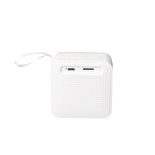Parlante portátil fabricado en ABS reciclado (rABS) y bambú. Tiene tecnología Bluetooth 5.0 y una batería de500 mAh que ofrece de 3 a 4 horas de reproducción. El parlante cuenta con ranura de tarjeta Micro SD. El parlante cuenta con un botón que permite encender y apagar el dispositivo, pausar y reproducir canciones, contestar y colgar llamados, cambiar a modo radio FM. El parlante cuenta con una función que permite unir dos parlantes en simultaneo para contar con reproducción estéreo. El parlante viene