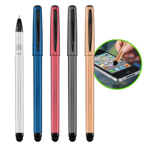 Roller Pen plástico modelo "Cooper" con puntero touch-screen para pantalla táctil, tinta negra. Cuerpo de color metalizado.