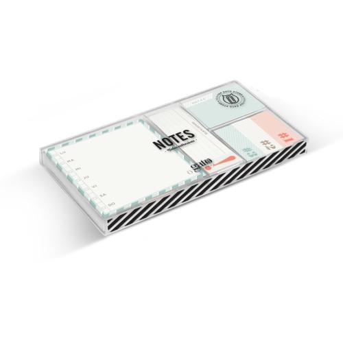 Papel de 100 gramos con adhesivo. Varias medidas. Notas adhesivas. Set ayuda memoria compuesto por 6 modelos de notas adhesivas. Presentación en caja de regalo.