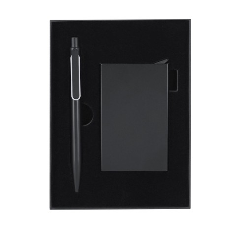 Set de bolígrafo y tarjetero fabricados en Aluminio Reciclado.El set incluye:- Bolígrafo en negro mate fabricado en Aluminio Reciclado de mecanismo pulsador con clip y elemento decorativo en metal pulido. - Tarjetero en negro fabricado en Aluminio Reciclado apto para 6 tarjetas con RFID y mecanismo pulsador para extrar las tarjetas.Ambos con logo de Aluminio Reciclado grabado y presentado en una elegante caja negra con interior troquelado. El Aluminio Reciclado es un material con posibilidades de reciclaje casi infinitas, sin perder sus propiedades originales y consumiendo menos energía en este proceso.Certificación GRS (Global Recycled Standard / Estándar de Reciclaje Global), que garantiza el origen reciclado del material usado para fabricar el producto. Tarjetero Protector RFID, 1 Compartimento. Bolígrafo