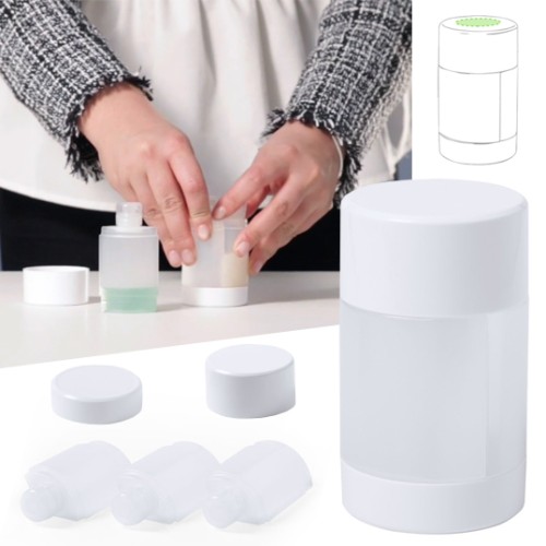 Set de viaje de 3 accesorios en resistente PP. Incluye 3 botes para gel y champú con cierre hermético. Presentado en estuche de original diseño. 3 Accesorios
