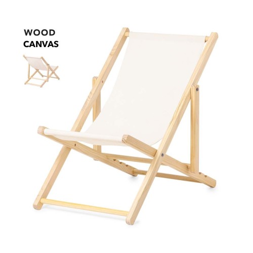 Silla plegable con estructura fabricada en madera, con respaldo y asiento en resistente y suave canvas de alto gramaje y acabado natural. Reclinable y convertible en tumbona, con 4 posiciones de ajuste y funda de transporte. Plegable