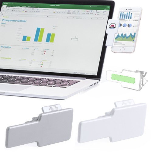 Soporte para smartphone con pinza de fijación extra firme para acople a pantalla de ordenador o tablet. Con amplia superficie de marcaje.