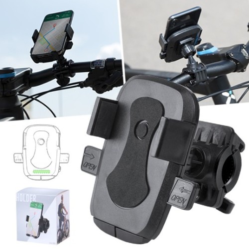 Práctico y resistente soporte de manillar para smartphone. Con 3 posiciones, rotación 360º y ángulo de inclinación de hasta 45º. Sólida pinza de agarre y presentado en atractiva caja de diseño. Ajustable