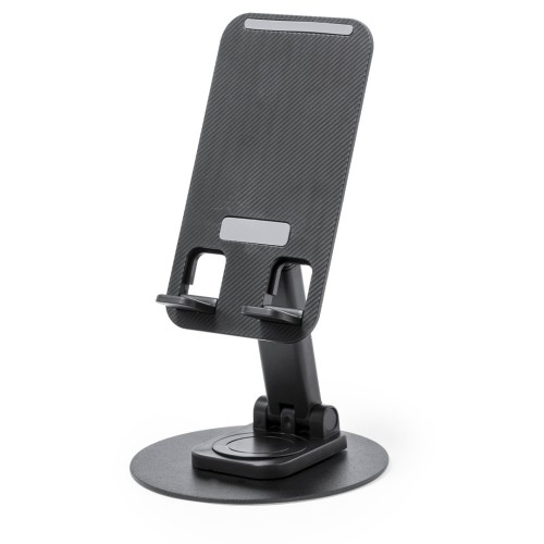 Soporte plegable para smartphone y tablet, fabricado en resistente aluminio y ABS. Regulable en altura, con almohadillas de goma antideslizantes en base y soporte. En sobrio acabado de color blanco o negro, y con amplia superficie de marcaje. Presentado en atractiva caja de diseño. Plegable. Ángulo Regulable