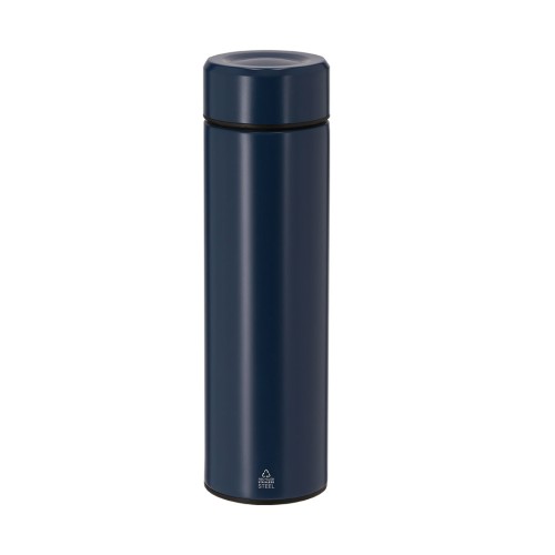 Termo en Acero Inox Reciclado de 450 ml de capacidad. Con doble pared para mejor y más duradera conservación de la temperatura e interior con recubrimiento de cerámica, apto para bebidas carbonatadas. Infusor incluido y sistema de apertura fácil a rosca. Con distintivo de Acero Inox Reciclado.El acero es uno de los materiales más demandados y que puede encontrarse casi en todas partes, desde productos de uso diario a grandes construcciones. Con innumerables propiedades, entre las que cabe destacar la durabilidad y su alto grado de reutilización, convirtiéndolo en una alternativa muy valorada en soluciones de sostenibilidad. Debidamente tratado, permite obtener nuevos recursos de infinita utilización. 450 ml. Infusor Incluido