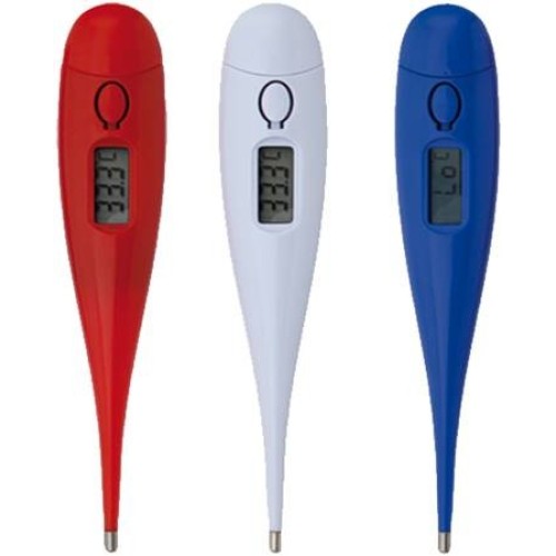 Termómetro digital de fácil uso en variada gama de colores. Presentado en resistente estuche transparente. Pilas de botón incluidas. Pila Botón Incluida